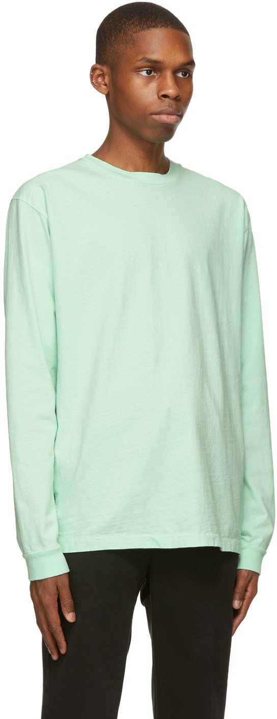 Long sleeve cotton jersey T-shirt in green. Rib knit crewneck collar and cuffs. Supplier color: Mint 100% cotton. Brand: John Elliott