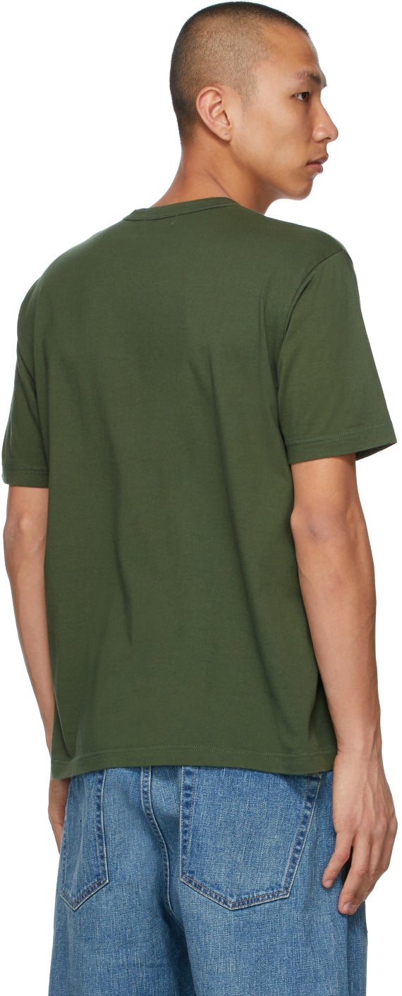 Short sleeve cotton jersey T-shirt in green. Rib knit crewneck collar. Logo printed in khaki at chest. Part of the eYe Comme des Garçons Junya Watanabe Man collection. Supplier color: Khaki 100% cotton. Brand: Junya Watanabe