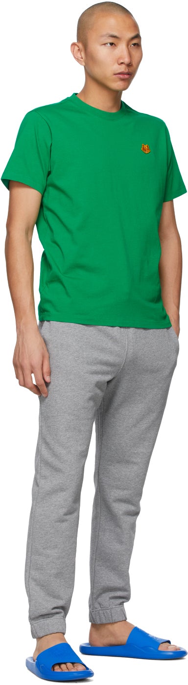 Short sleeve cotton jersey T-shirt in green. Rib knit crewneck collar. Logo appliqué in orange at chest. Tonal logo embroidered at back. Supplier color: Green 100% cotton. Brand: Kenzo