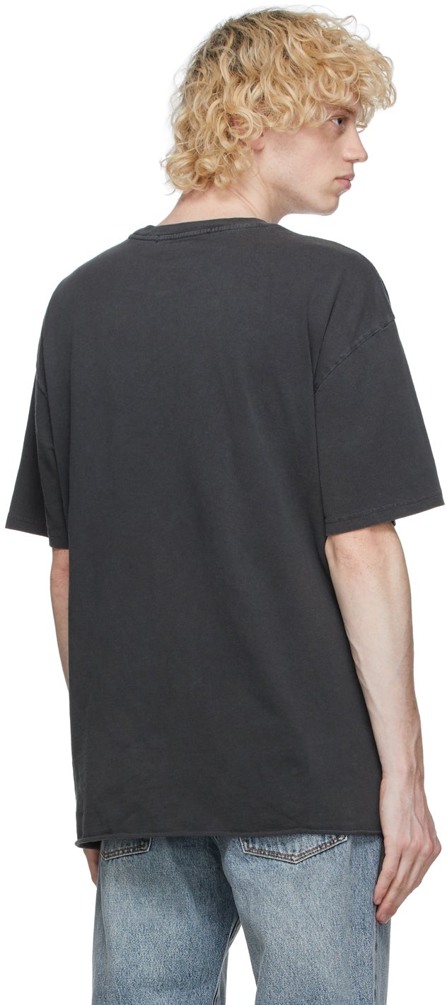 Short sleeve cotton jersey T-shirt in grey. Rib knit crewneck collar. Tonal graphic and text printed at chest. Raised seam at side-seam. Logo printed in grey at back hem. Extended trim at inner hem. Supplier color: Grey 100% cotton. Brand: Ksubi