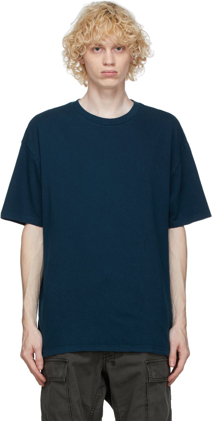 Short sleeve cotton jersey T-shirt in navy. Rib knit crewneck collar. Raised seam at side-seam. Logo printed in grey at back hem. Extended trim at inner hem. Supplier color: Navy 100% cotton. Brand: Ksubi