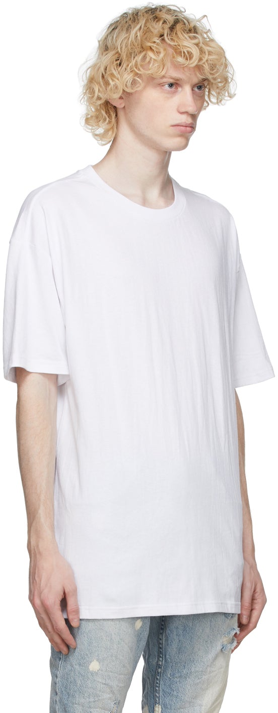 Short sleeve cotton jersey T-shirt in white. Rib knit crewneck collar. Raised seam at side-seam. Logo printed in grey at back hem. Extended trim at inner hem. Supplier color: White 100% cotton. Brand: Ksubi