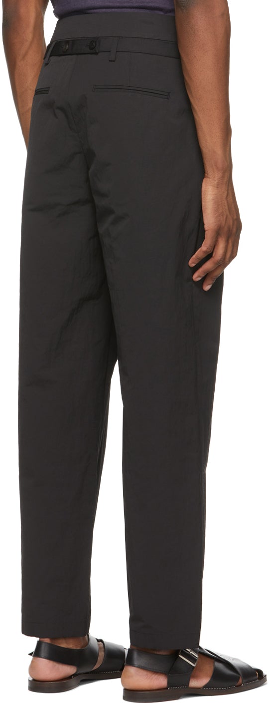 Slim-fit cotton blend crêpe trousers in black. Mid-rise. Four-pocket styling. Integrated strap with button fastening at back waistband. Zip-fly. Tonal hardware. Supplier color: Black 50% polyester, 32% cotton, 18% polyamide. Brand: LE17SEPTEMBRE