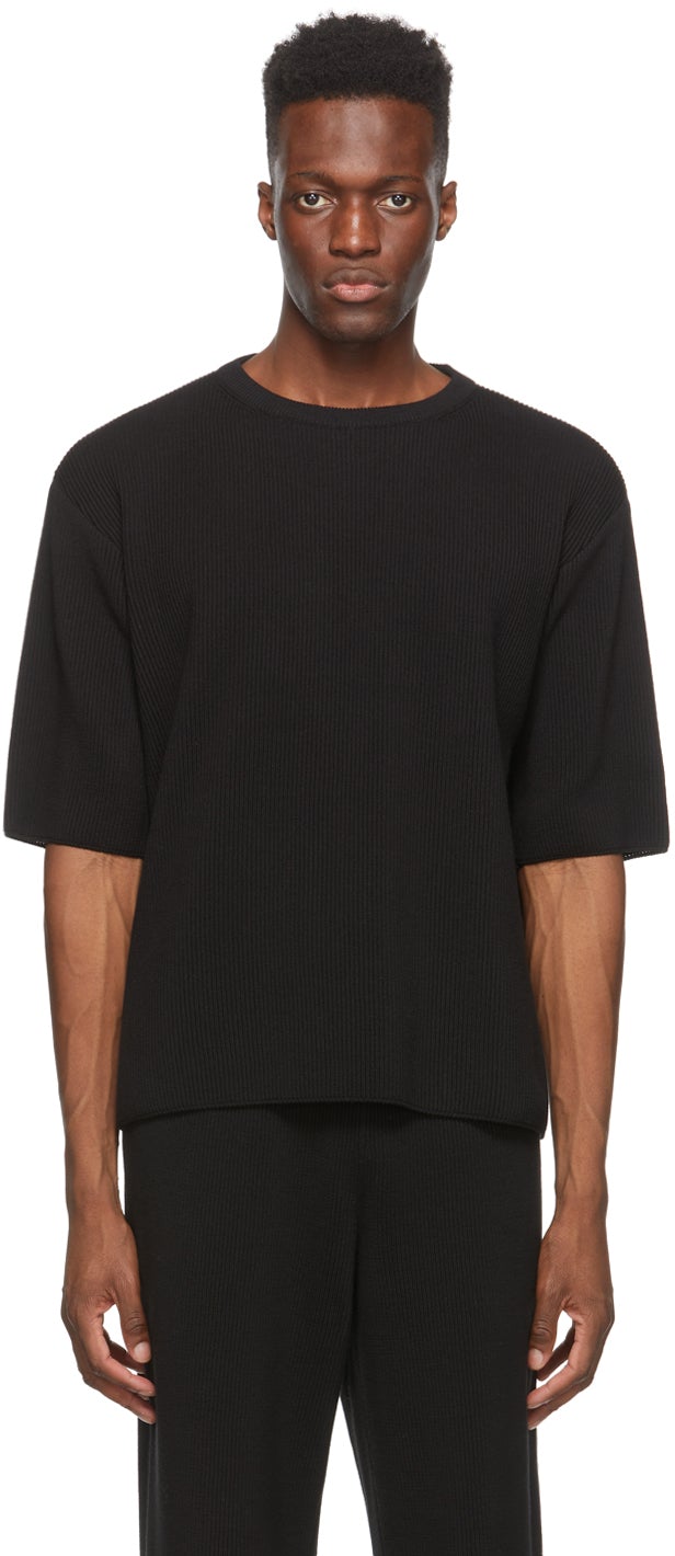 Half-sleeve rib knit cotton T-shirt in black. Crewneck collar. Tonal pull-loop at side-seam. Vented side-seams. Dropped shoulders. Supplier color: Black 100% cotton. Brand: LE17SEPTEMBRE