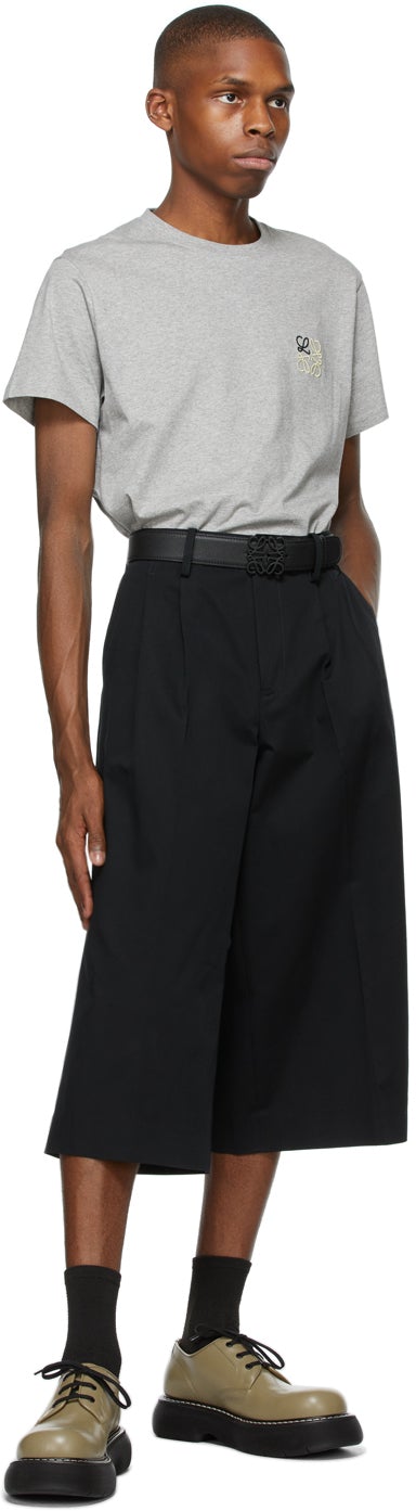 Short sleeve cotton jersey T-shirt in heather grey. Rib knit crewneck collar. Logo embroidered in off-white and black at chest. Supplier color: Grey mélange 100% cotton. Brand: Loewe