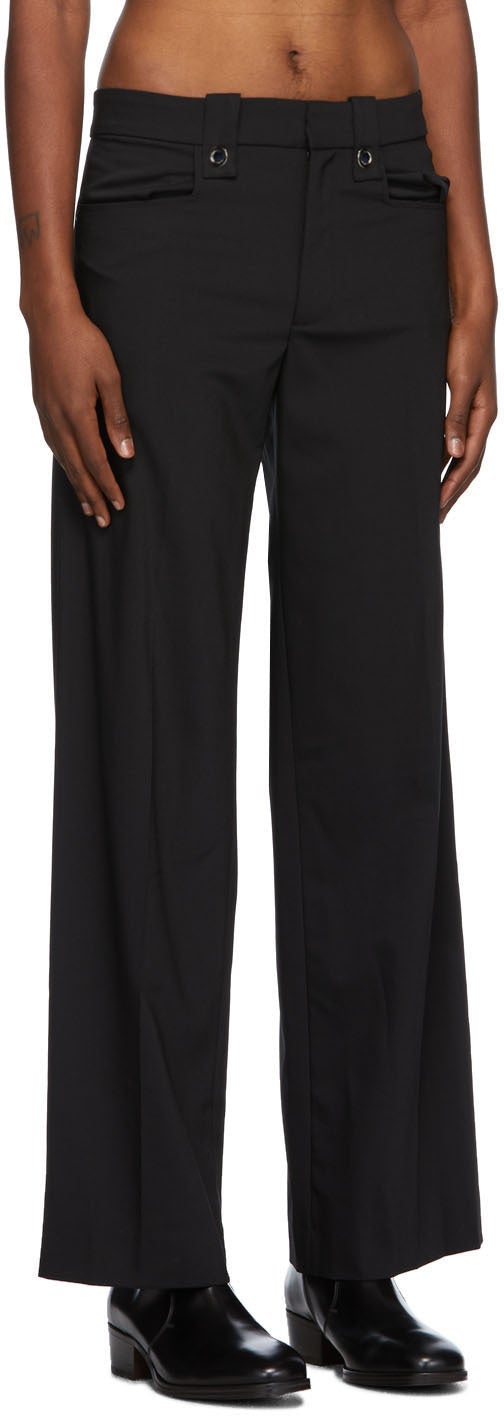 Wide-leg woven wool trousers in black. Mid-rise. Two-pocket styling. Belt loops and metal eyelets at waistband. Central crease at front and back. Zip-fly. Black and silver-tone hardware. Supplier color: Black 100% wool. Brand: Ludovic de Saint Sernin