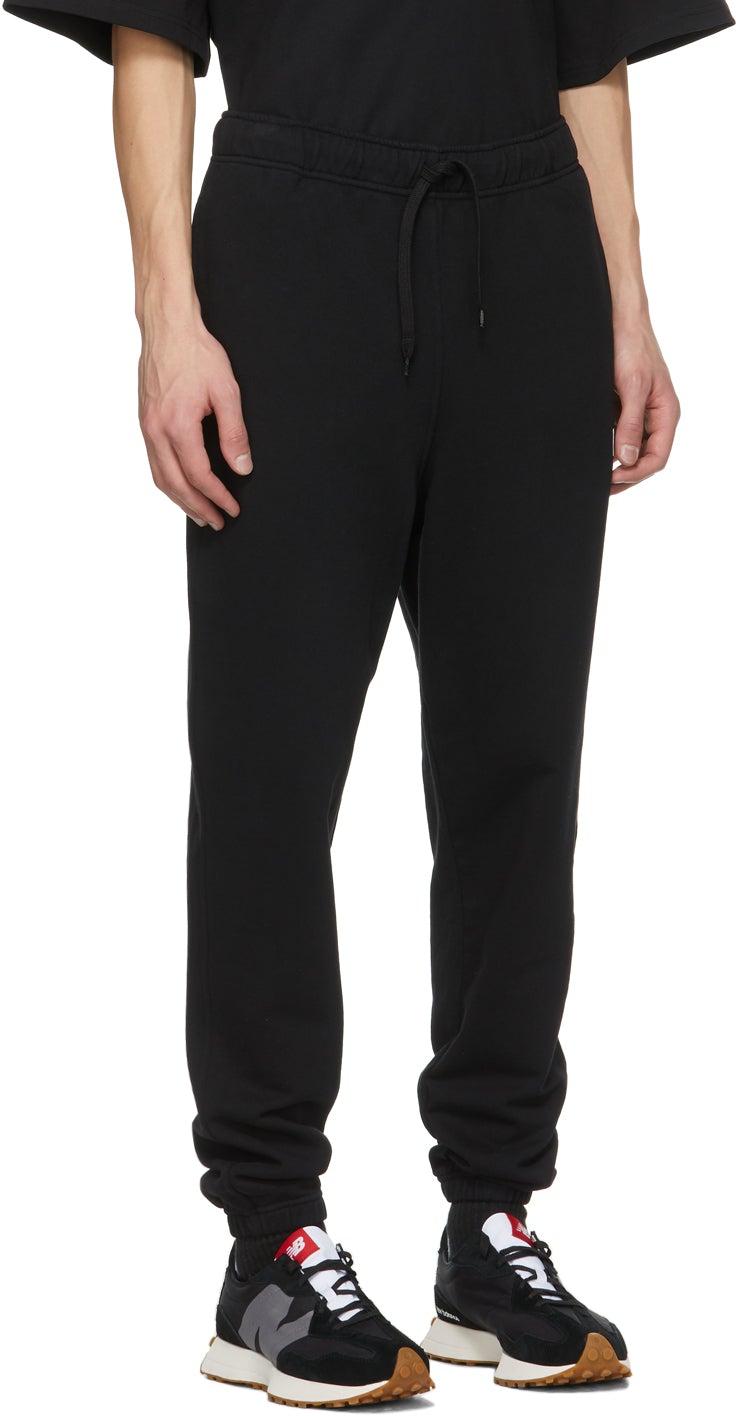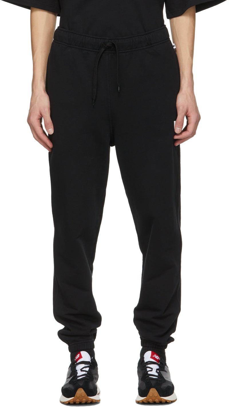 Relaxed-fit French terry track pants in black. Mid-rise. Two-pocket styling. Drawstring at elasticized waistband. Logo printed in white at front leg. Logo flag in white at outseam. Elasticized cuffs. Supplier color: Black 100% cotton. Brand: M.A. Martin Asbjørn