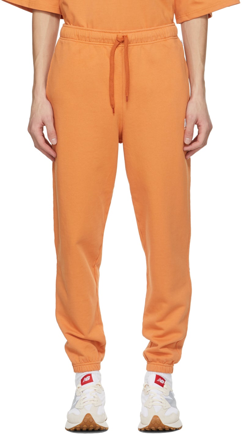 Relaxed-fit French terry track pants in orange. Mid-rise. Two-pocket styling. Drawstring at elasticized waistband. Logo printed in white at front leg. Logo flag in white at outseam. Elasticized cuffs. Supplier color: Golden ochre 100% cotton. Brand: M.A. Martin Asbjørn