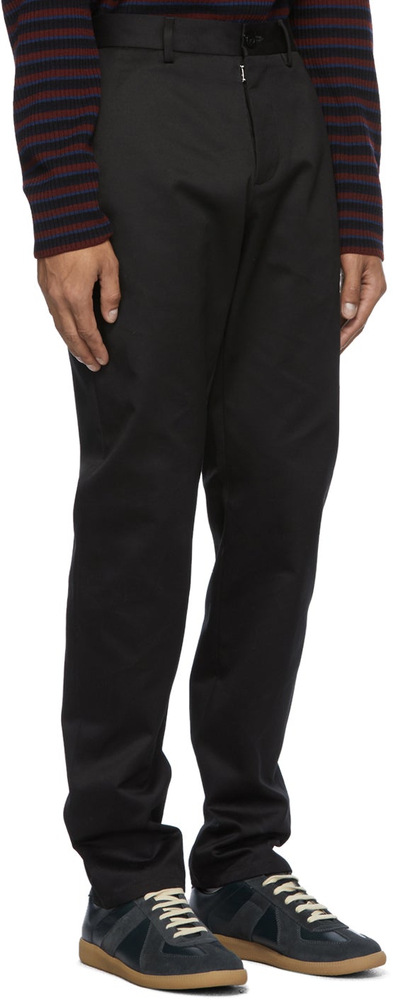 Straight-leg mercerized cotton gabardine trousers in black. Mid-rise. Four-pocket styling. Belt loops at waistband. Signature stitching in white at back. Button-fly. Tonal and silver-tone hardware. Supplier color: Black 100% cotton. Brand: Maison Margiela