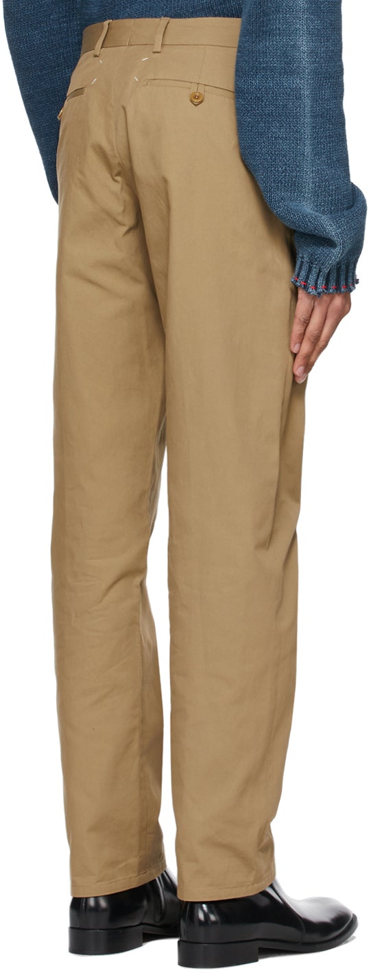Straight-leg cotton gabardine trousers in brown. High-rise. Four-pocket styling. Belt loops at waistband. Signature white stitching at back waistband. Button-fly. Tonal and silver-tone hardware. Supplier color: Cinnamon 100% cotton. Brand: Maison Margiela