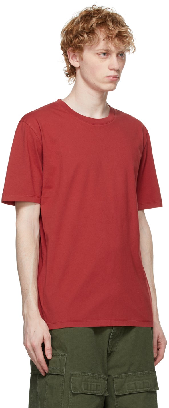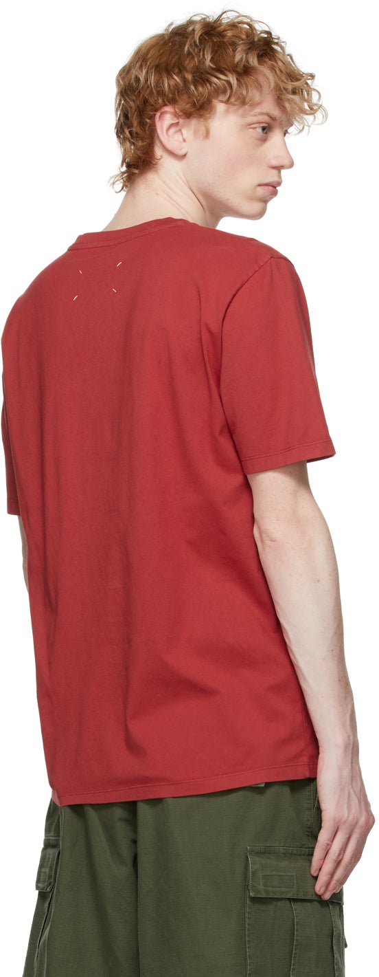 Short sleeve cotton jersey T-shirt in red. Rib knit crewneck collar. Signature white stitching at back. Supplier color: Military red 100% cotton. Brand: Maison Margiela
