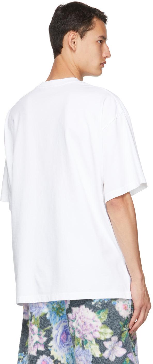Short sleeve cotton jersey T-shirt in white. Rib knit crewneck collar. Graphic printed in multicolor at front. Supplier color: White 100% cotton. Brand: Martine Rose