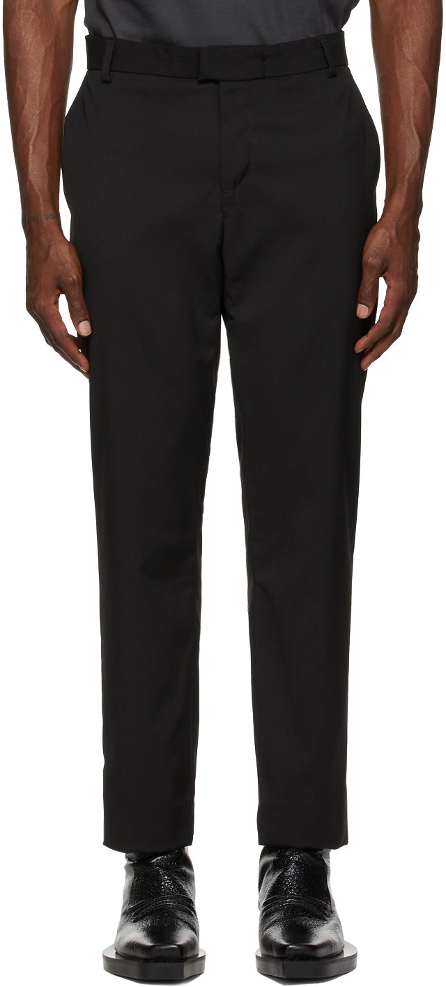 Straight-leg wool twill trousers in black. Mid-rise. Four-pocket styling. Belt loops at waistband. Zip-fly. Antiqued silver-tone hardware. Supplier color: Black Body: 100% wool. Trim: 100% cupro. Brand: Mr. Saturday
