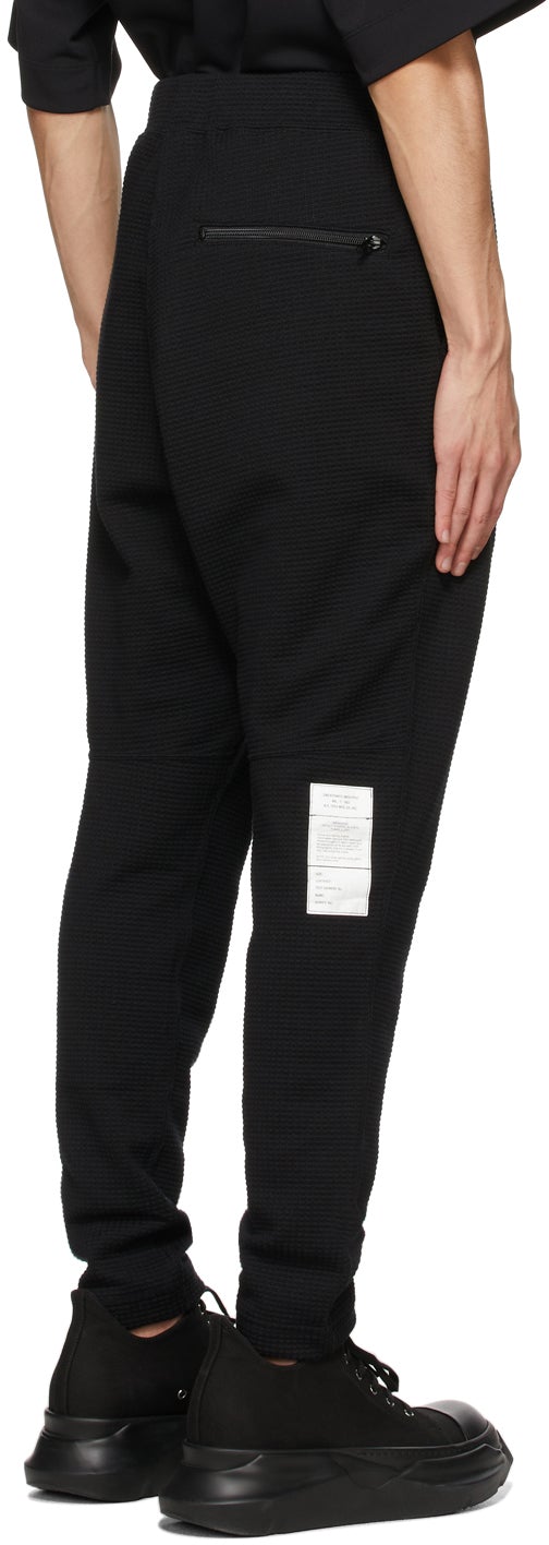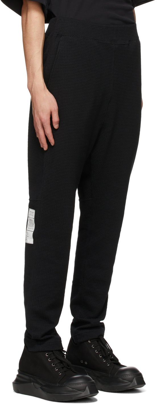 Slim-fit waffle knit cotton-blend trousers in black. High-rise. Three-pocket styling. Concealed drawstring at elasticized waistband. Textile patch in white at back. Part of the Test Product Exchange Service collection. Supplier color: Black 75% cotton, 25% polyester. Brand: N.Hoolywood