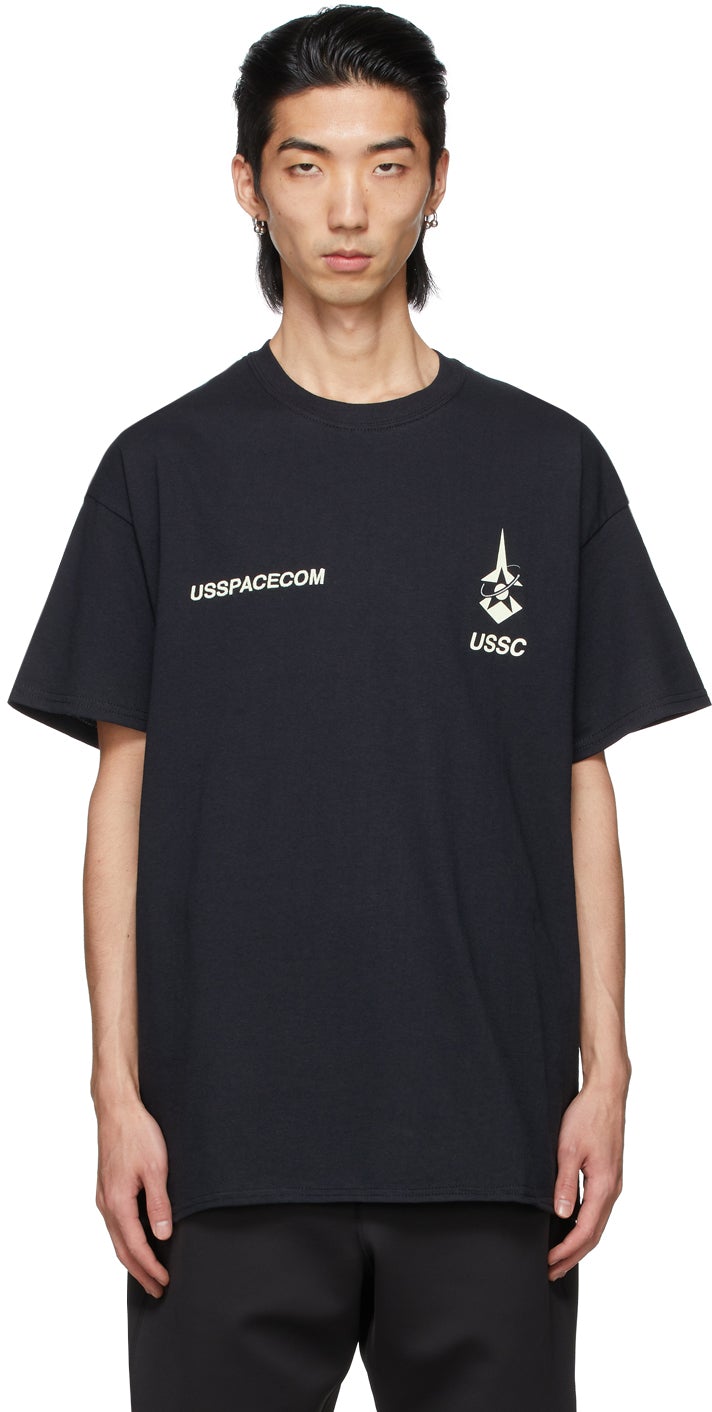 N.Hoolywood Black Test Product Exchange Service 'Usspacecom' T-Shirt