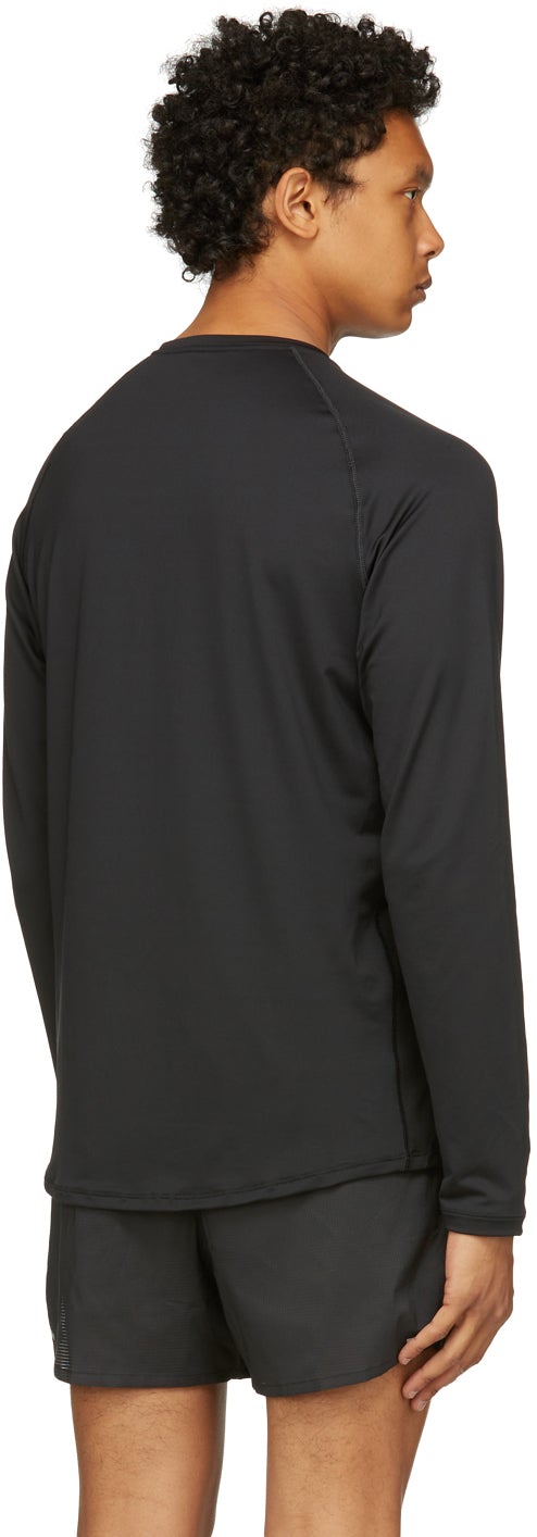 Long sleeve stretch technical jersey T-shirt in black. Crewneck collar. Bonded Swoosh in white at chest. Bonded logo in dark grey at front hem. Raglan sleeves. Supplier color: Black/White Body: 91% polyester, 9% spandex. Trim: 92% polyester, 8% spandex. Brand: Nike