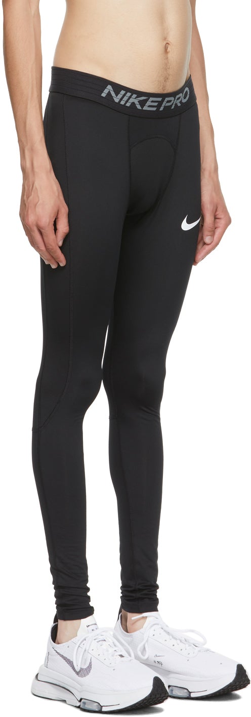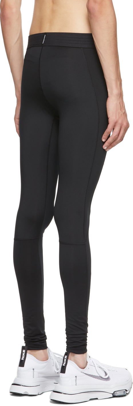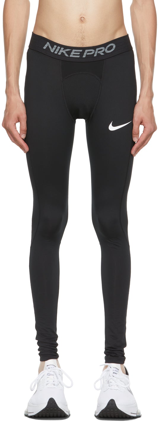 Stretch technical jersey tights in black. Mid-rise. Knit logo in grey at elasticized waistband. Swoosh printed in white at front leg. Supplier color: Black/White 93% polyester, 7% spandex. Brand: Nike