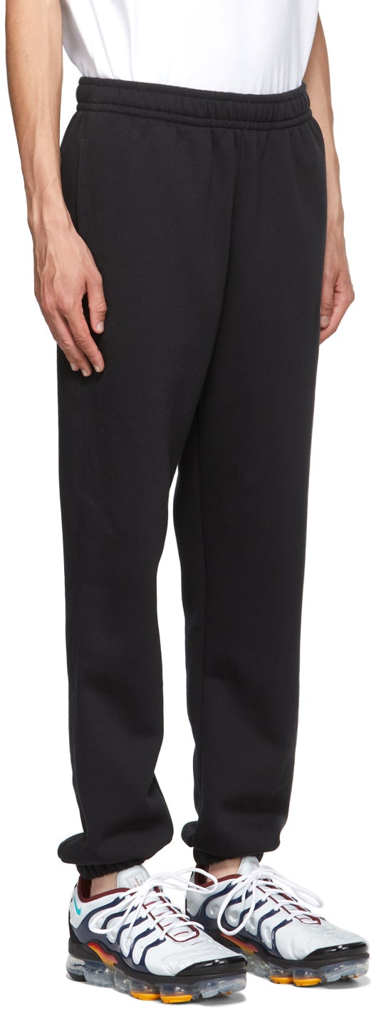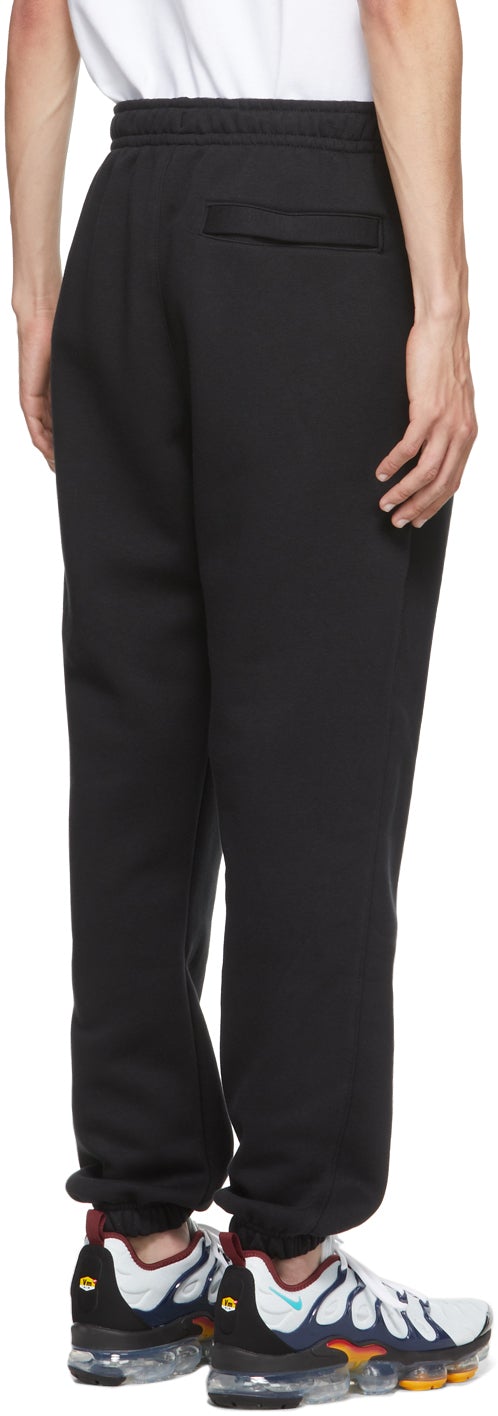 Tapered cotton-blend fleece lounge pants in black. Mid-rise. Three pocket styling. Concealed drawstring at waistband. Logo embroidered in white at front. Rib knit cuffs. Supplier color: Black/White 80% cotton, 20% polyester. Brand: Nike