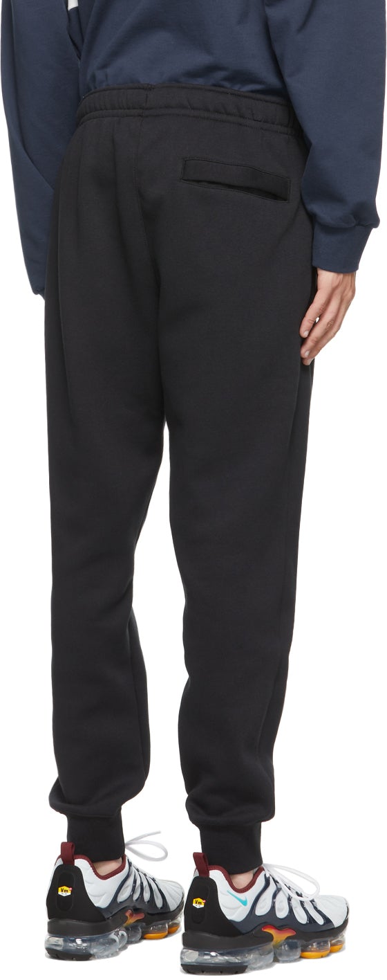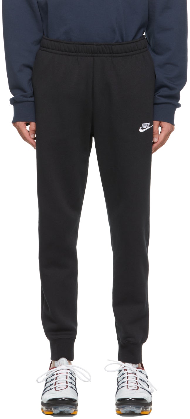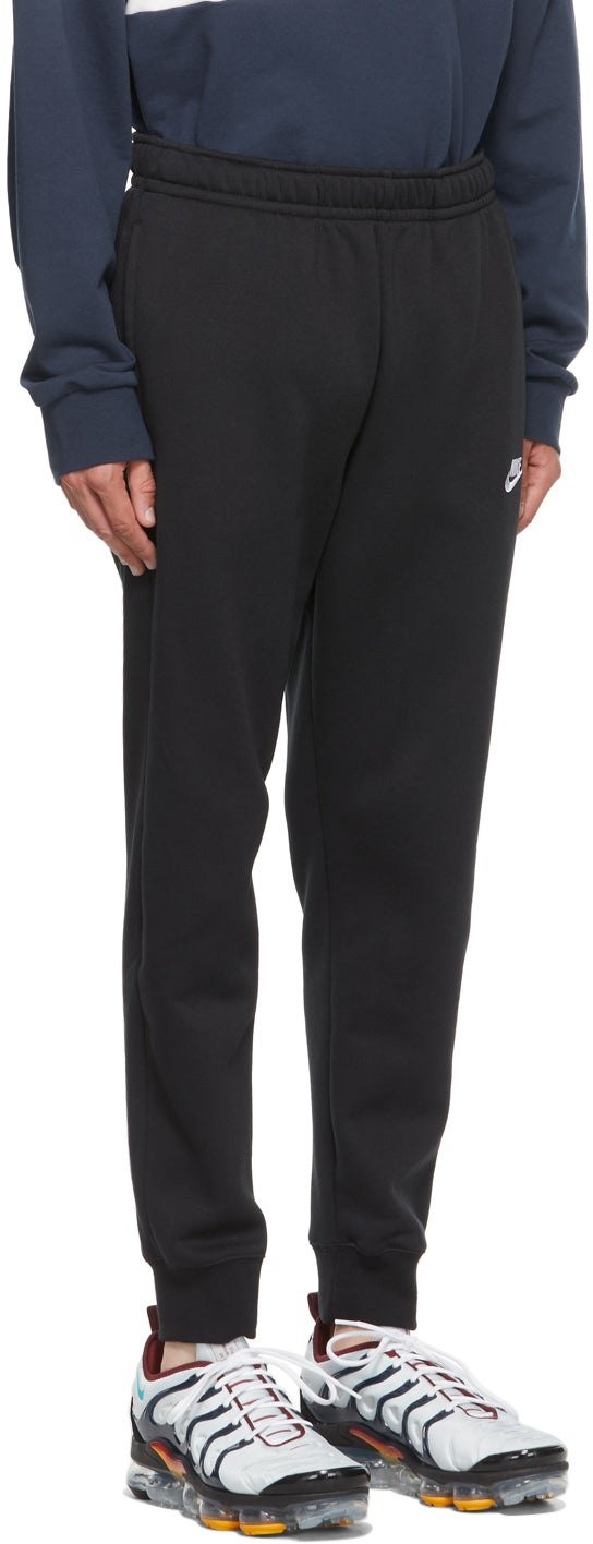 Tapered cotton-blend fleece lounge pants in black. Mid-rise. Three pocket styling. Concealed drawstring at waistband. Logo embroidered in white at front. Rib knit cuffs. Supplier color: Black/White 80% cotton, 20% polyester. Brand: Nike