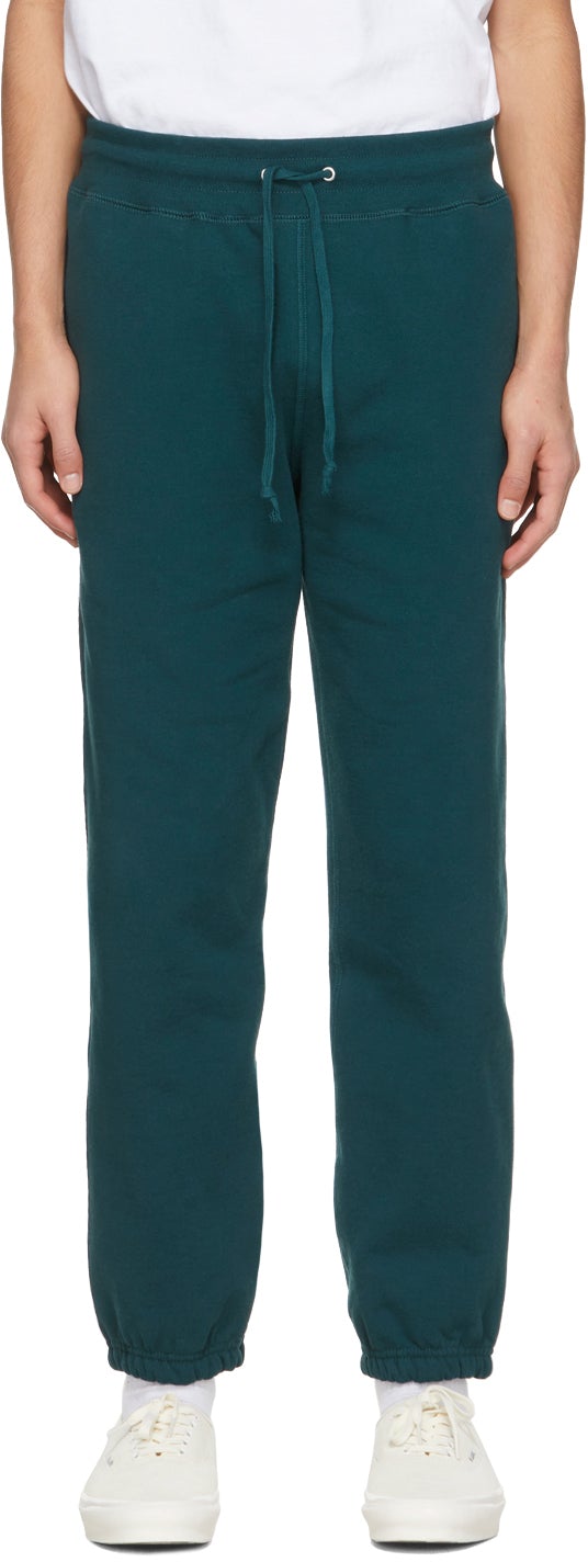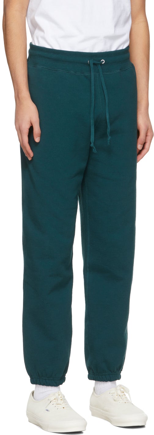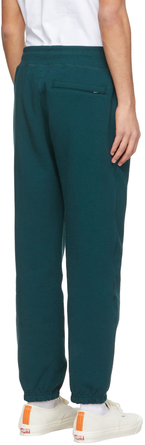 Tapered 12 oz. cotton fleece sweatpants in green. Mid-rise. Three-pocket styling. Drawstring at elasticized waistband. Logo embroidered in white and red at front. Elasticized cuffs. Silver-tone hardware. Supplier color: Reflecting pond 100% cotton. Brand: Noah