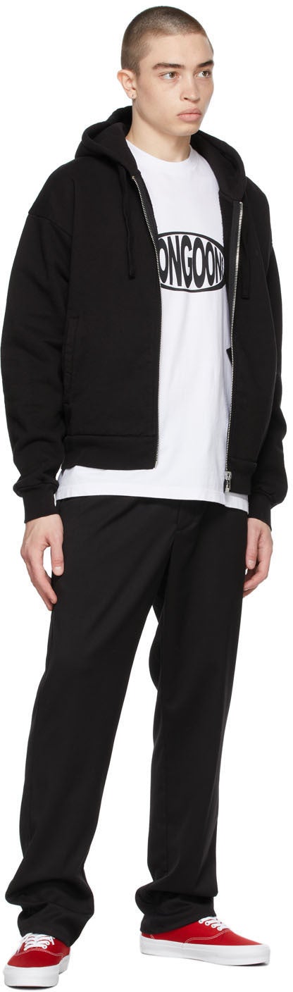 Short sleeve garment-dyed cotton jersey T-shirt in white. Rib knit crewneck collar. Logo printed in black at front. Textile logo patch in black at side-seam. Supplier color: White 100% cotton. Brand: Noon Goons