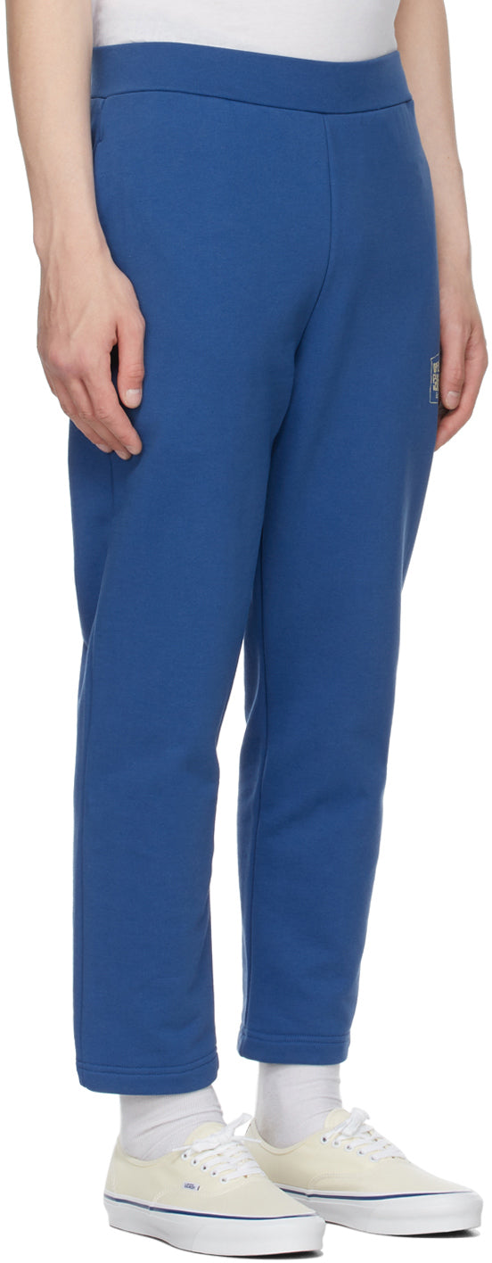 Slim-fit French terry lounge pants in blue. Mid-rise. Two-pocket styling. Elasticized waistband. Logo printed in beige at front. Supplier color: Cobalt 100% cotton. Brand: Opening Ceremony