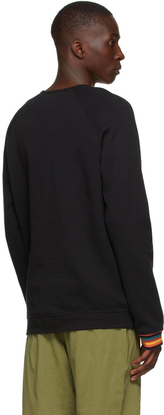 Long sleeve cotton jersey T-shirt in black. Crewneck collar. Raglan sleeves. Signature multicolor stripes at cuffs. Rib knit cuffs and hem. Logo patch in white at hem. Supplier color: Black 100% cotton. Brand: Paul Smith