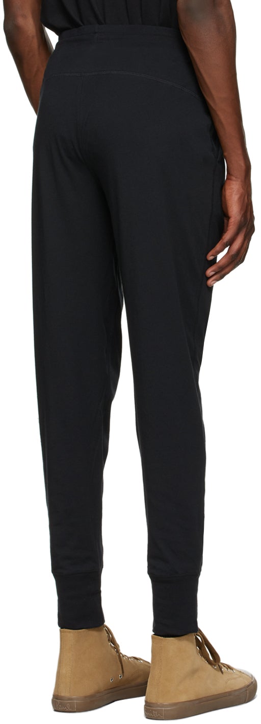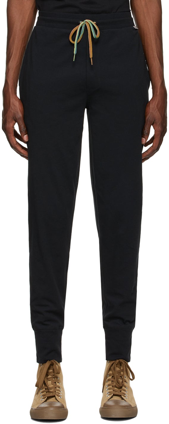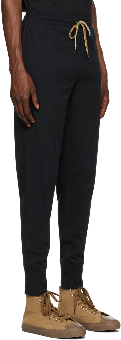Relaxed-fit cotton jersey lounge pants in black. Mid-rise. Two-pocket styling. Multicolor drawstring and logo flag at elasticized waistband. Elasticized rib knit cuffs. Supplier color: Black 100% cotton. Brand: Paul Smith
