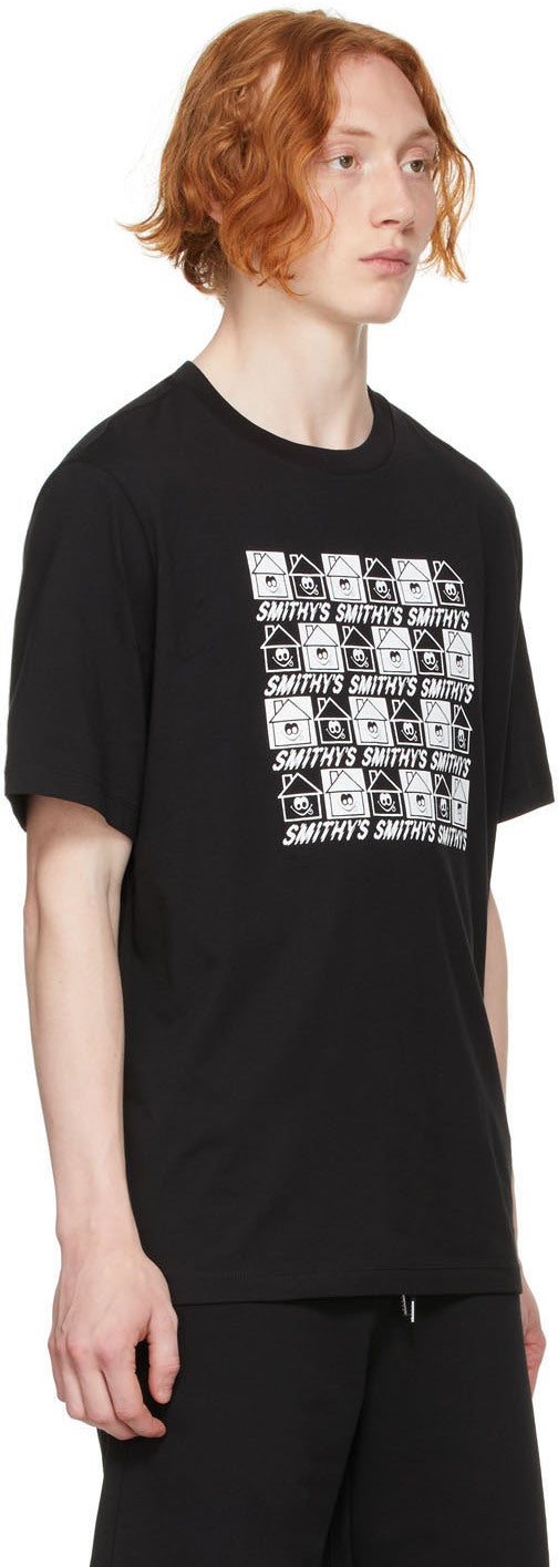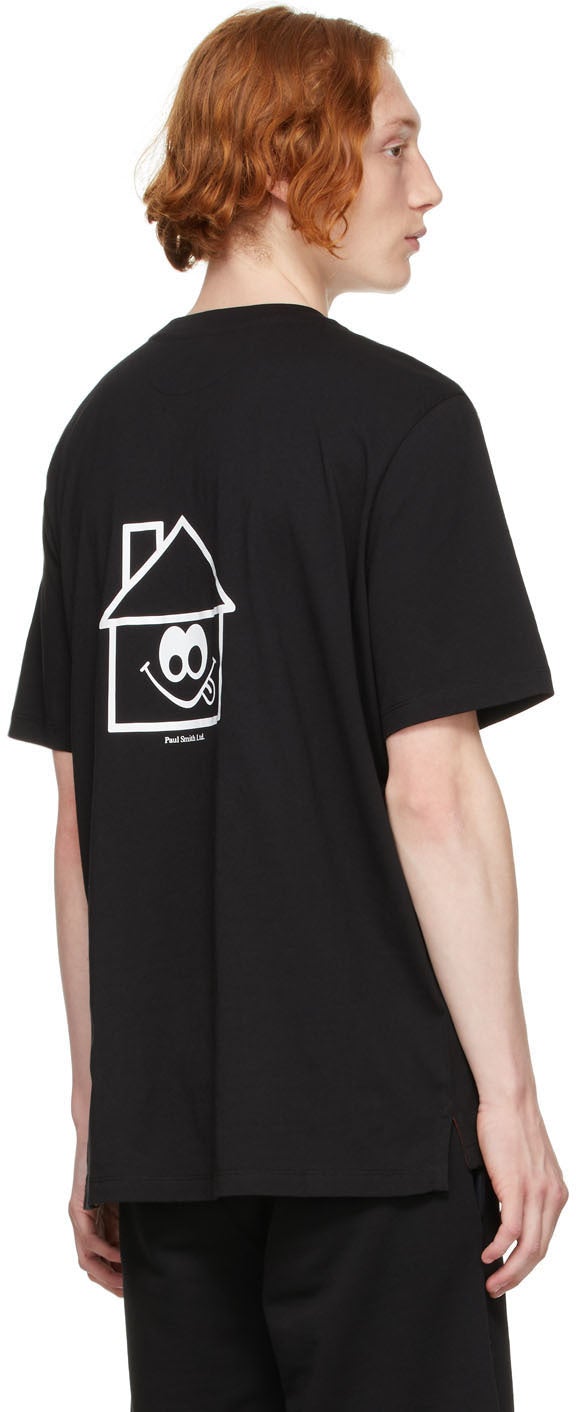 Short sleeve organic cotton jersey T-shirt in black. Rib knit crewneck collar. Graphic print in white and black at front. Vent at side-seams featuring signature stripes in multicolor. Graphic bonded in white at back. Supplier color: Black 100% organic cotton. Brand: Paul Smith