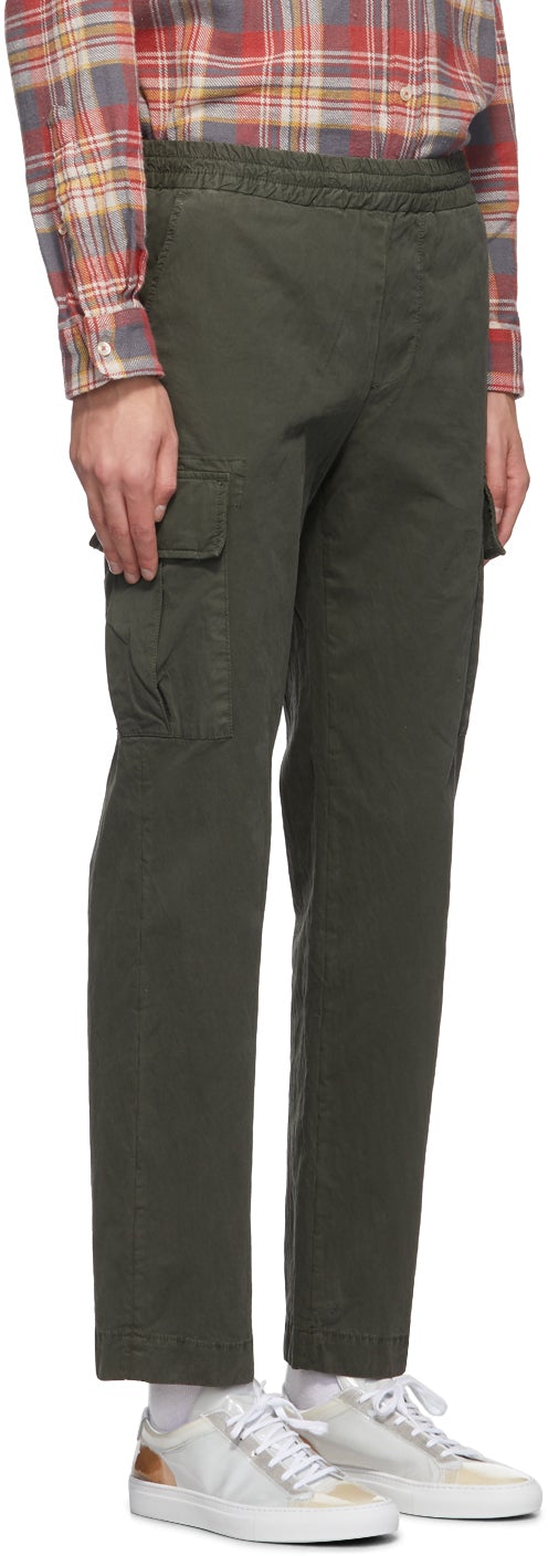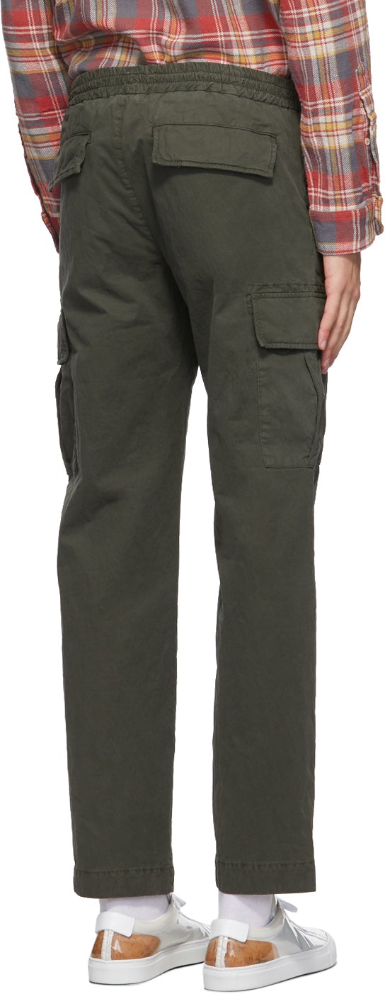 Tapered garment-dyed cotton and nylon-blend gabardine trousers in green. Mid-rise. Four-pocket styling. Concealed drawstring at elasticized waistband. Flap pocket at outseams. Supplier color: Army green 65% cotton, 35% polyamide. Brand: PRESIDENT's