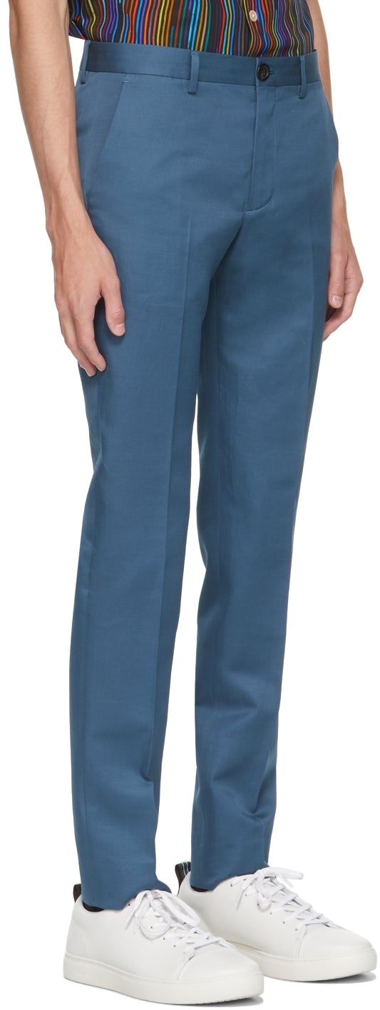 Straight-leg cotton and linen-blend twill trousers in blue. Mid-rise. Four-pocket styling. Belt loops at waistband. Pleats at front. Darts at back. Zip-fly. Black hardware. Supplier color: Blue 69% cotton, 31% linen. Brand: PS by Paul Smith