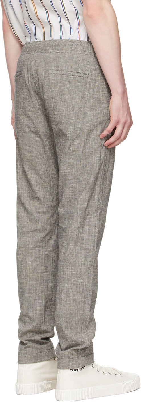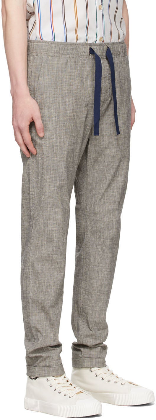 Relaxed-fit woven cotton and linen-blend trousers featuring houndstooth pattern in tones of grey. Mid-rise. Four-pocket styling. Webbing drawstring in navy at elasticized waistband. Rolled cuffs. Supplier color: Beige 84% cotton, 14% linen, 2% elastane. Brand: PS by Paul Smith