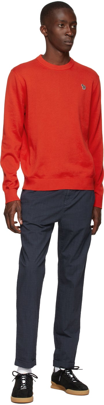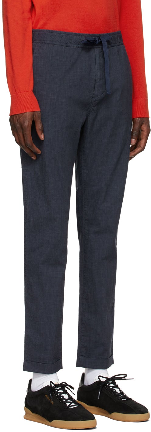 Slim-fit stretch cotton and linen-blend trousers in navy. Four-pocket styling. Drawstring at elasticized waistband. Darts at back waist. Concealed zip-fly. Supplier color: Navy 84% cotton, 14% linen, 2% elastane. Brand: PS by Paul Smith