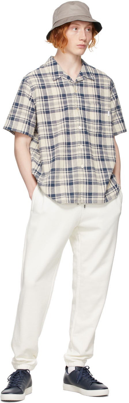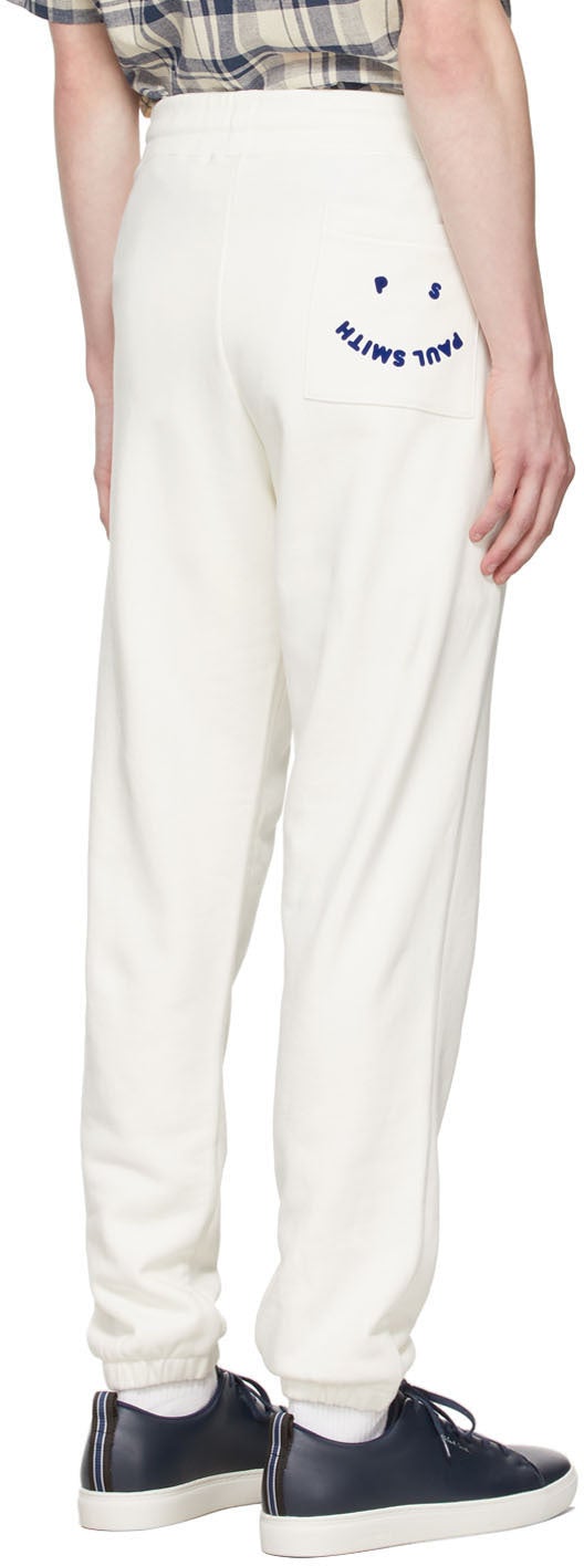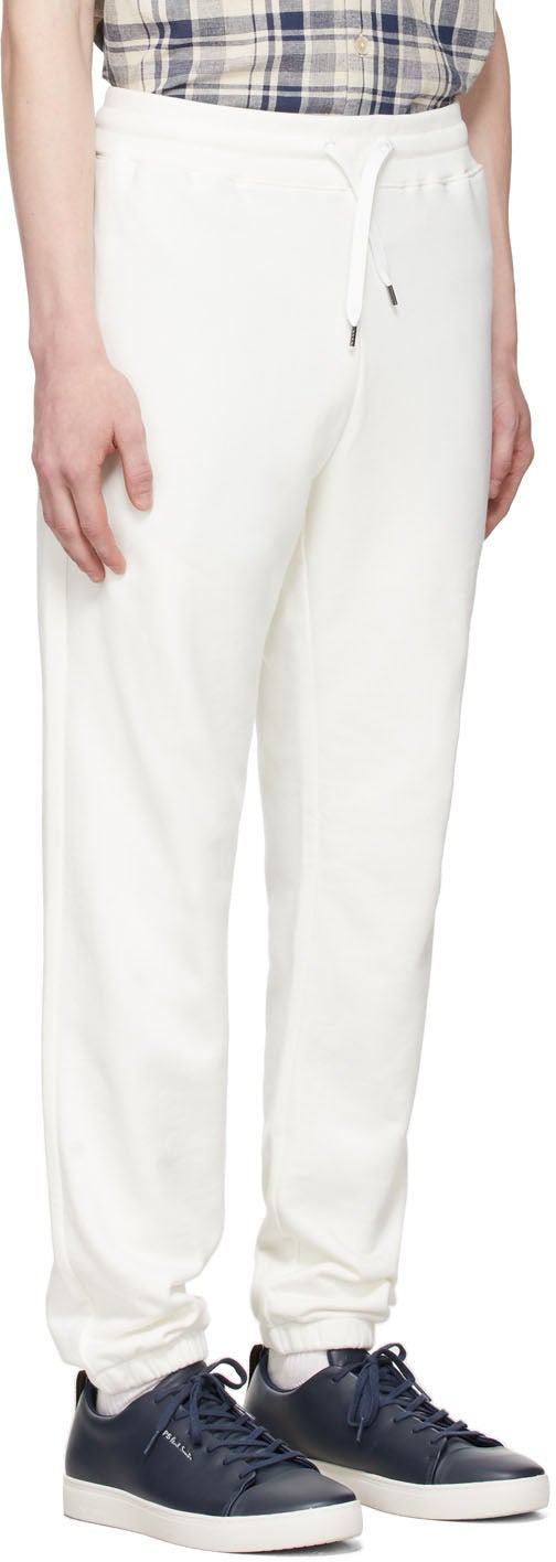 Relaxed-fit French terry lounge pants in off-white. Mid-rise. Three-pocket styling. Tonal drawstring at elasticized waistband. Elasticized cuffs. Felted logo bonded in blue at back. Supplier color: Off-white 100% cotton. Brand: PS by Paul Smith