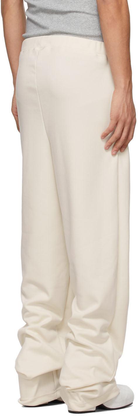Straight-leg jersey lounge pants in off-white. High-rise. Two-pocket styling. Concealed drawstring at elasticized waistband. Pinched seam at front. Unlined. Silver-tone hardware. Supplier color: Cream 100% polyester. Brand: Random Identities