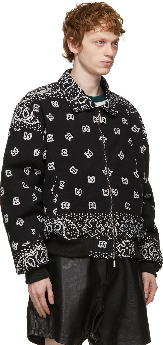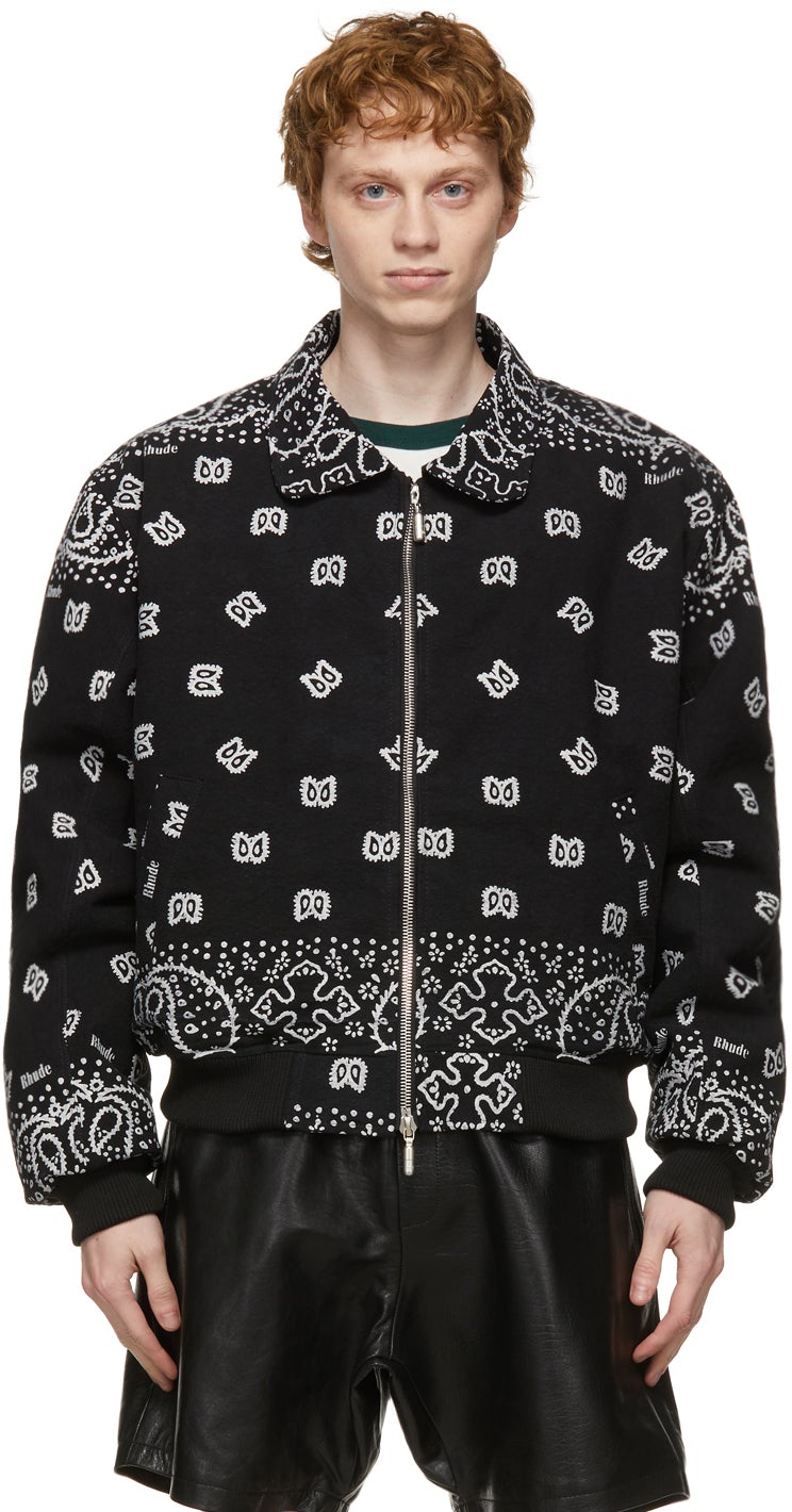 Rhude SSENSE Exclusive Black Bandana Bomber Jacket