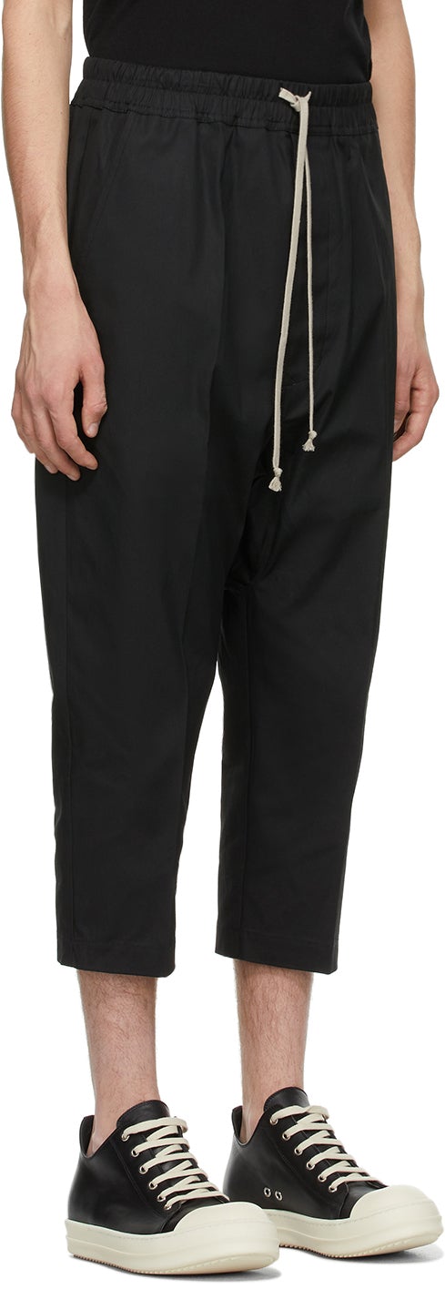 Rick Owens Black Cropped Drawstring Trousers - Pantalon à cordon recadré noir Rick Owens - Rick Owens 검은 색 자른 Drawstring 바지