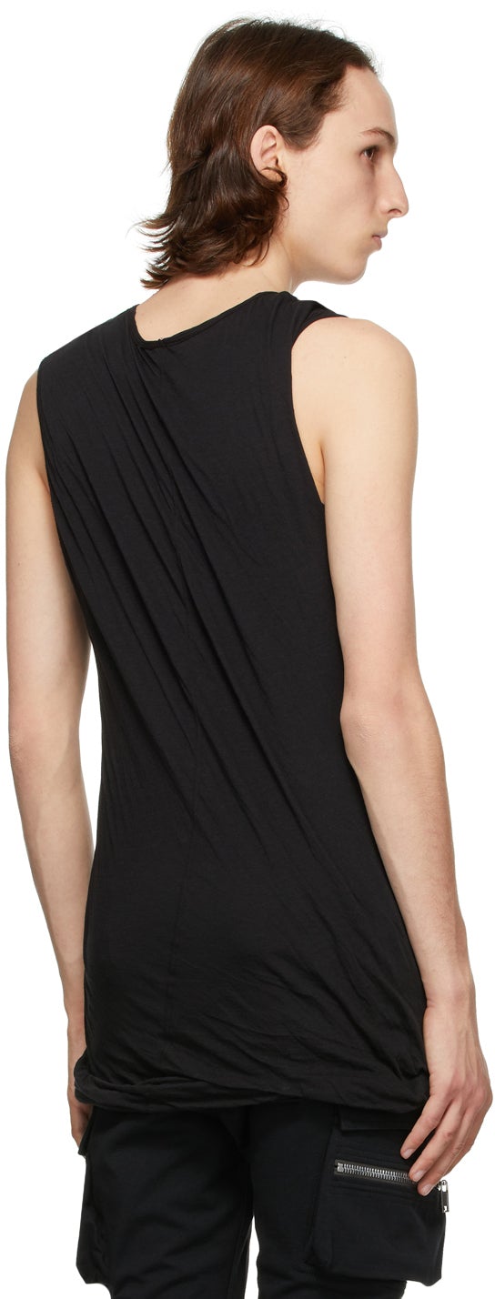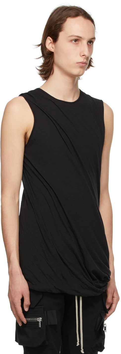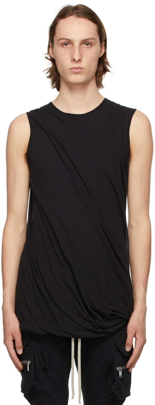Sleeveless cotton jersey tank top in black. Rib knit crewneck collar and armscyes. Rolled hem. Pinched seam at back. Full tonal cotton jersey lining. Supplier color: Black 100% cotton. Brand: Rick Owens