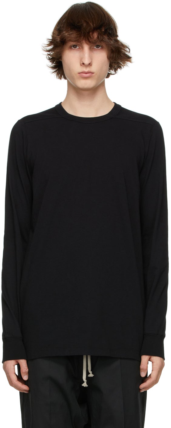 Long sleeve cotton jersey T-shirt in black. Rib knit crewneck collar and cuffs. Supplier color: Black 100% cotton. Brand: Rick Owens