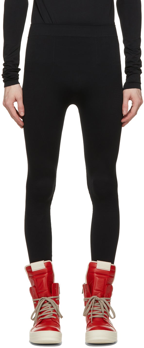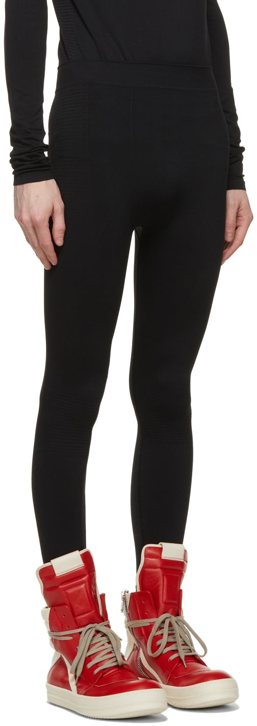 Paneled stretch piqué leggings in black. Mid-rise. Pinched seams throughout. Rib knit waistband and cuffs. Textured knit trim at outseams and knees. Supplier color: Black 95% polyester, 5% elastane. Brand: Rick Owens