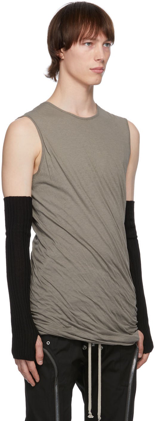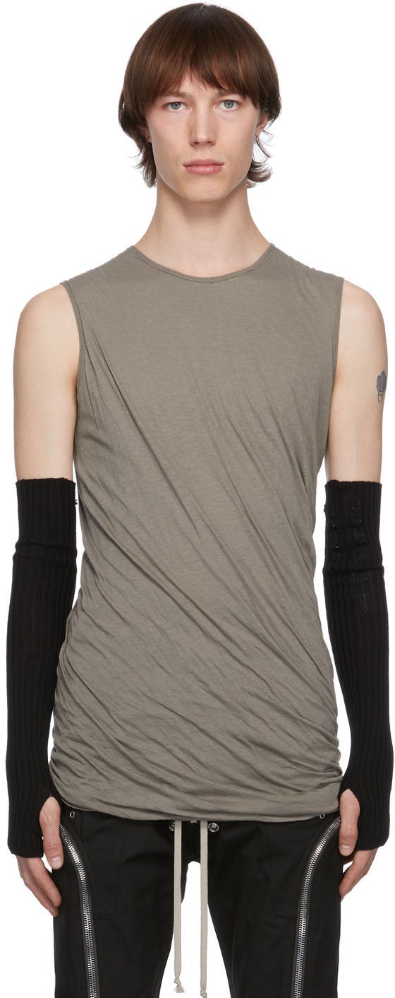 Sleeveless cotton jersey tank top in grey. Rib knit crewneck collar and armscyes. Rolled hem. Asymmetric seam at back. Full tonal cotton jersey lining. Supplier color: Dust 100% cotton. Brand: Rick Owens