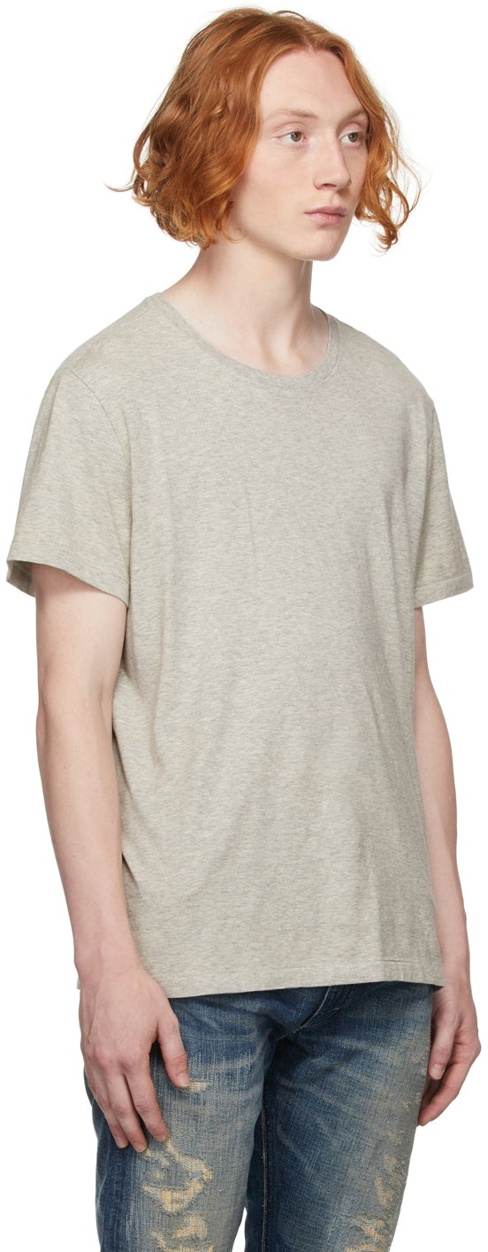 Short sleeve garment-dyed cotton jersey T-shirt in heather grey. Rib knit crewneck collar. Supplier color: Heather grey 100% cotton. Brand: RRL