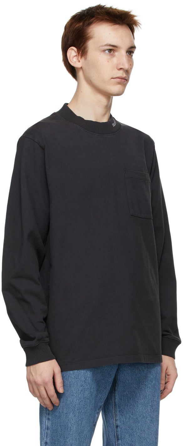 Long sleeve heavyweight cotton jersey T-shirt in faded black. Logo embroidered in white at rib knit mock neck collar. Patch pocket at chest. Rib knit cuffs. Supplier color: Black 100% cotton. Brand: Saturdays NYC