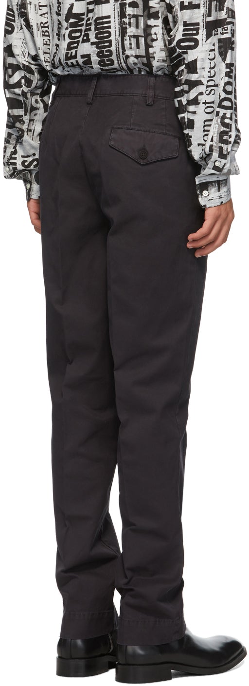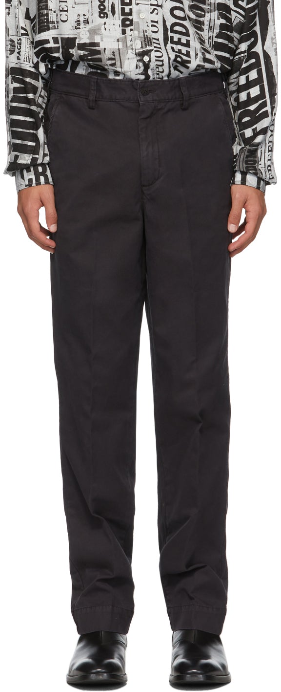 Tapered denim trousers in black. Mid-rise. Three-pocket styling. Belt loops at waistband. Central creases at front and back. Unlined. Zip-fly. Supplier color: Black 100% cotton. Brand: Schnayderman's