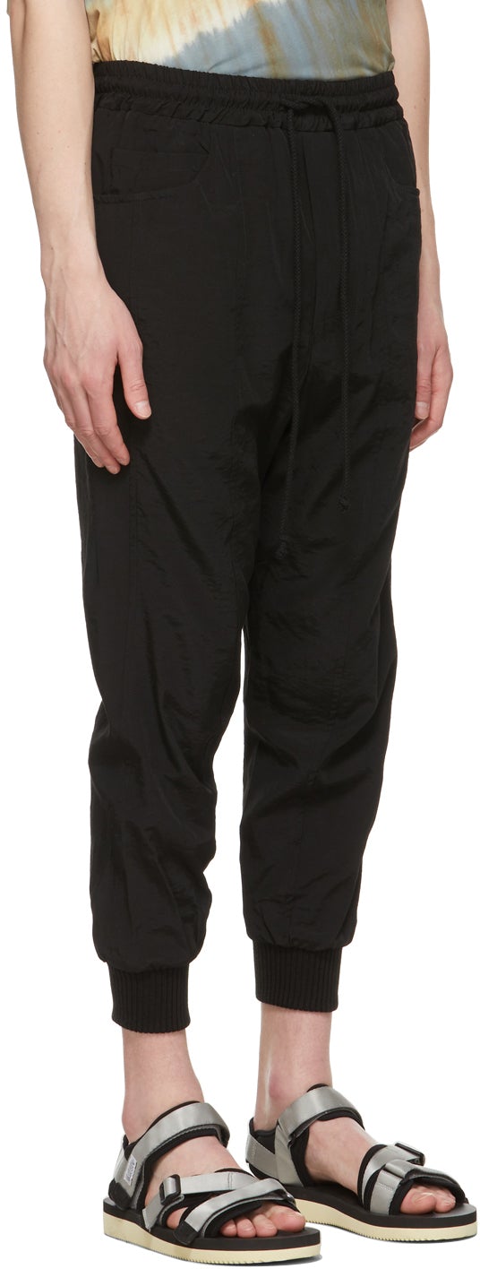 Relaxed-fit nylon-blend taffeta lounge pants in black. Mid-rise. Four-pocket styling. Drawstring at elasticized waistband. Rib knit cuffs. Button-fly. Supplier color: Black 59% polyamide, 41% lyocell. Brand: Song for the Mute