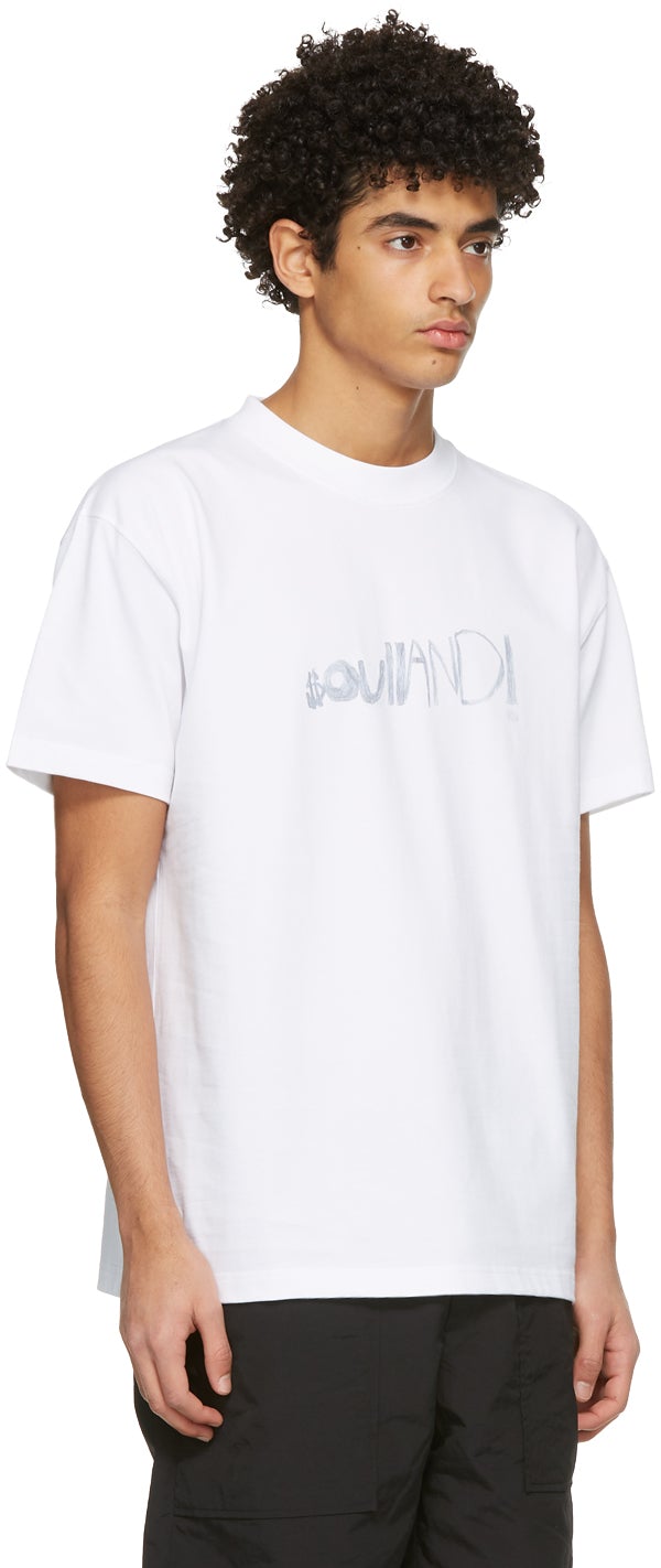 Short sleeve organic cotton jersey T-shirt in white. Rib knit crewneck collar. Logo printed in tones of grey at front. Supplier color: White 100% organic cotton. Brand: Soulland