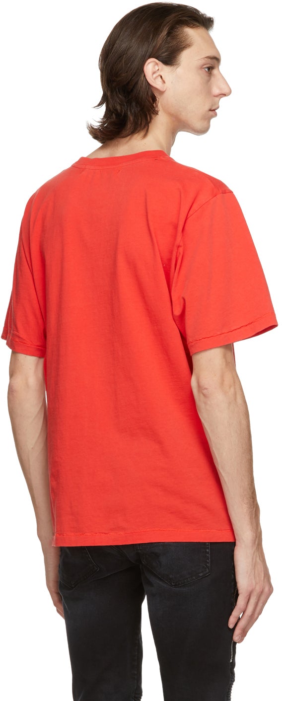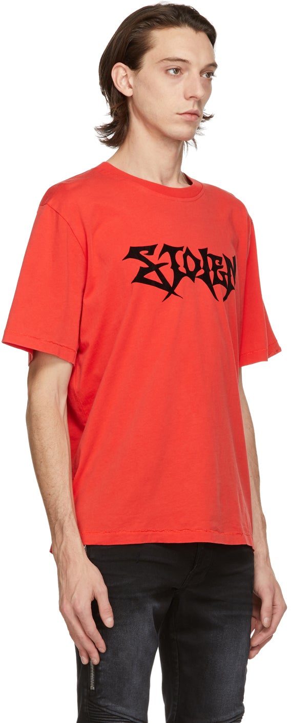 Short sleeve organic cotton jersey T-shirt in red. Rib knit crewneck collar. Graphic flocked in black at front. Supplier color: Fire haze 100% organic cotton. Brand: Stolen Girlfriends Club