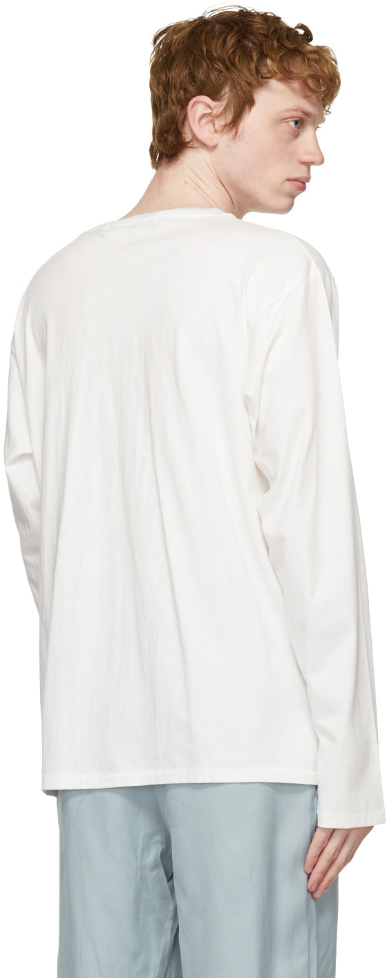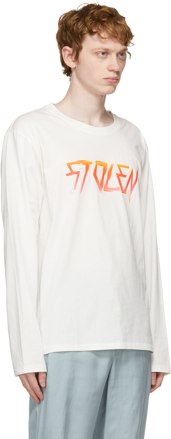 Long sleeve organic cotton jersey T-shirt in white. Rib knit crewneck collar. Printed logo featuring gradient pattern in tones of yellow, orange, and red at front. Tonal embroidered logo at cuff. Supplier color: White 100% organic cotton. Brand: Stolen Girlfriends Club