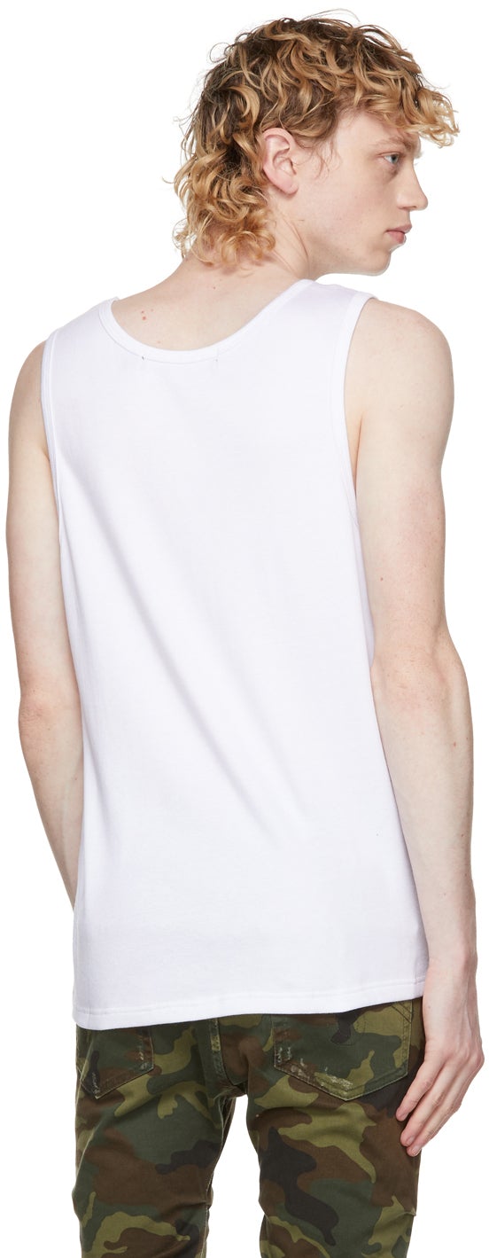 Rib knit tank top in white. Scoop neck collar. Logo graphic embroidered in black at chest. Supplier color: White 100% cotton. Brand: Stolen Girlfriends Club