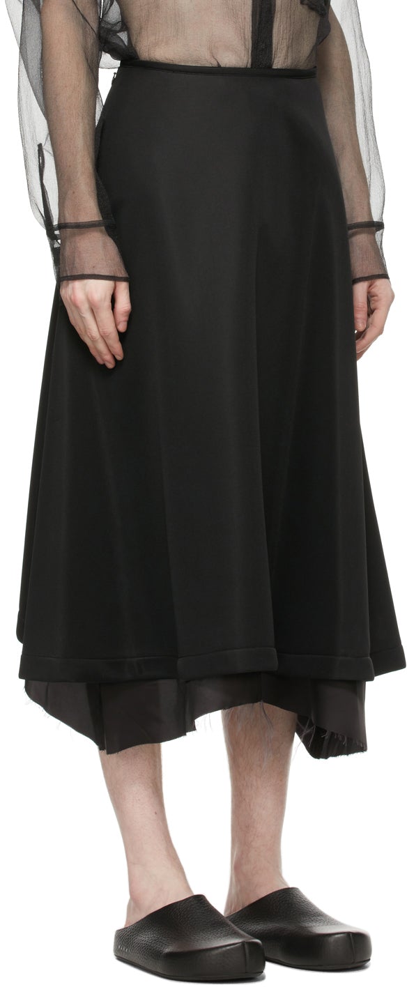 Layered jersey and satin mid-length skirt in black. Mid-rise. Zip closure at side-seam. Distressing at unfinished hem. Tonal satin lining. Tonal hardware. Supplier color: Black Body: 100% polyester. Lining: 100% cupro. Brand: Sulvam